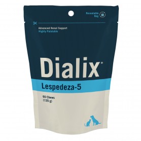 Dialix Lespedeza é um suplemento dietético em chews altamente palatáveis formulado para cães e gatos com doença renal crónica, redução de uremia, diurético.